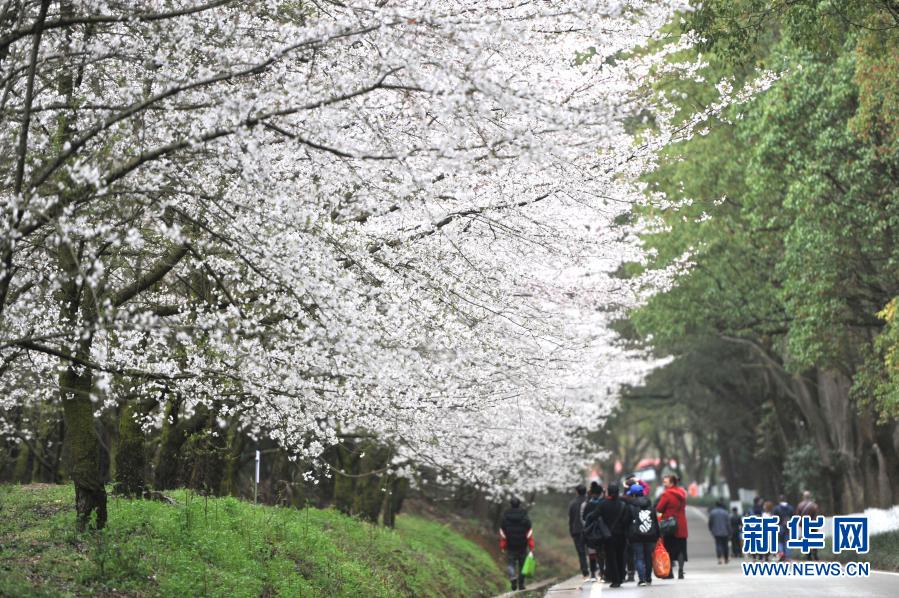 春季里,貴州省貴安新區紅楓湖畔的櫻花園內櫻花綻放,花海如云似雪,吸引游人踏春賞櫻。