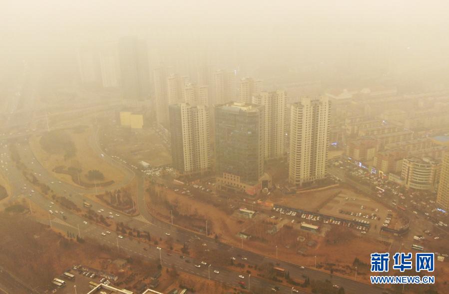 這是3月15日拍攝的遼寧省沈陽市渾南區一景(無人機照片)。當日,我國北方多地出現沙塵天氣。新華社記者 楊青 攝