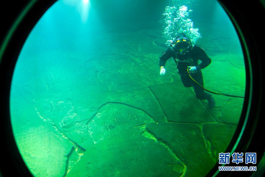 當日,重慶涪陵白鶴梁水下博物館迎來了第三次閉館修繕后的首次潛水員水下清理作業。潛水員通過壓力艙,進入水下40多米的白鶴梁題刻無壓容器罩中,重點清理水下燈具和燈罩、參觀廊道的觀察窗口玻璃,以及題刻本體上的泥沙。