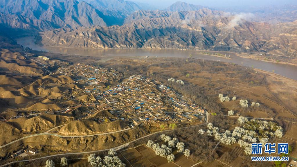 這是位于寧夏中衛市黃河黑山峽河段的南長灘村(4月5日攝,無人機照片)。