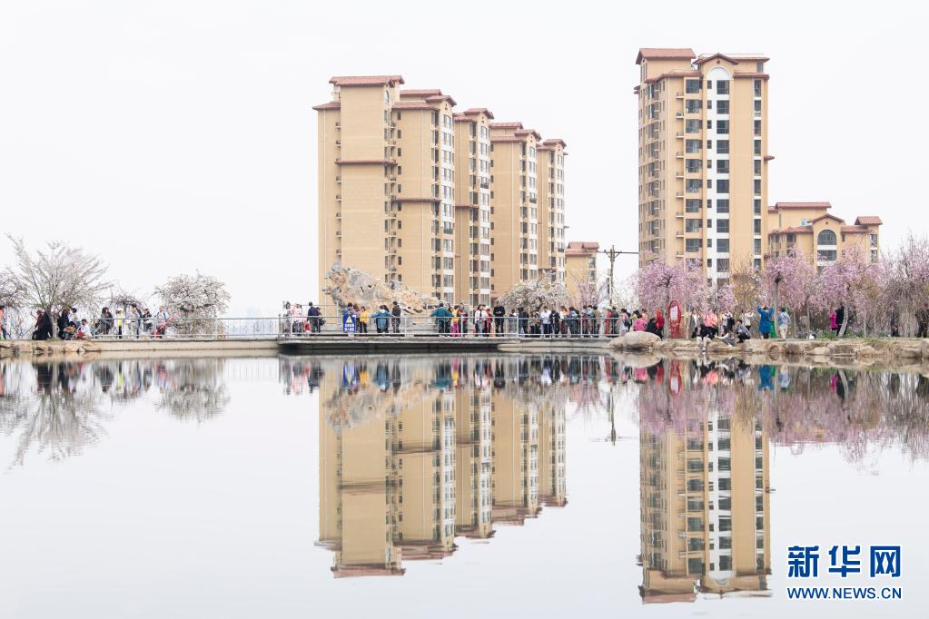 4月7日,游人在山西省太原市玉泉山城郊森林公園賞花。近日,山西省太原市玉泉山城郊森林公園栽植的近25萬株各類櫻花競相盛開,吸引不少市民前來觀賞。新華社記者 楊晨光攝