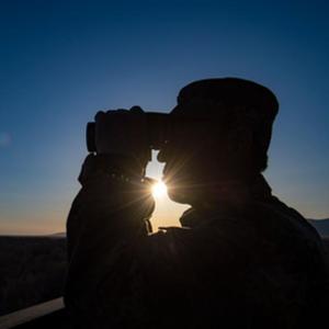 新疆生產建設兵團第10師185團職工馬軍武(右)在巡邏途中(4月9日攝)。
