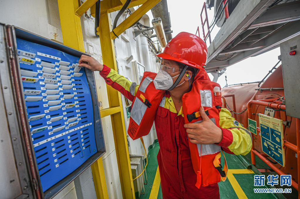 4月25日,工人在中國海油樂東15-1氣田上進行應急演練。