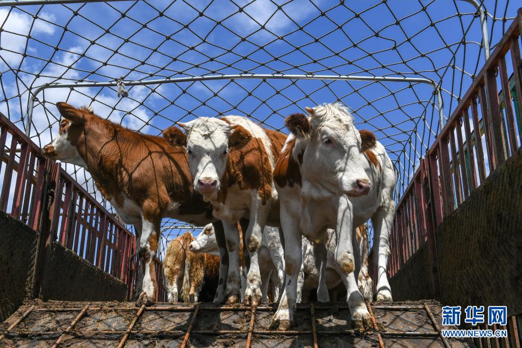 這是6月1日拍攝的開(kāi)魯牛市物流廣場(chǎng)上已裝車(chē)的活牛。