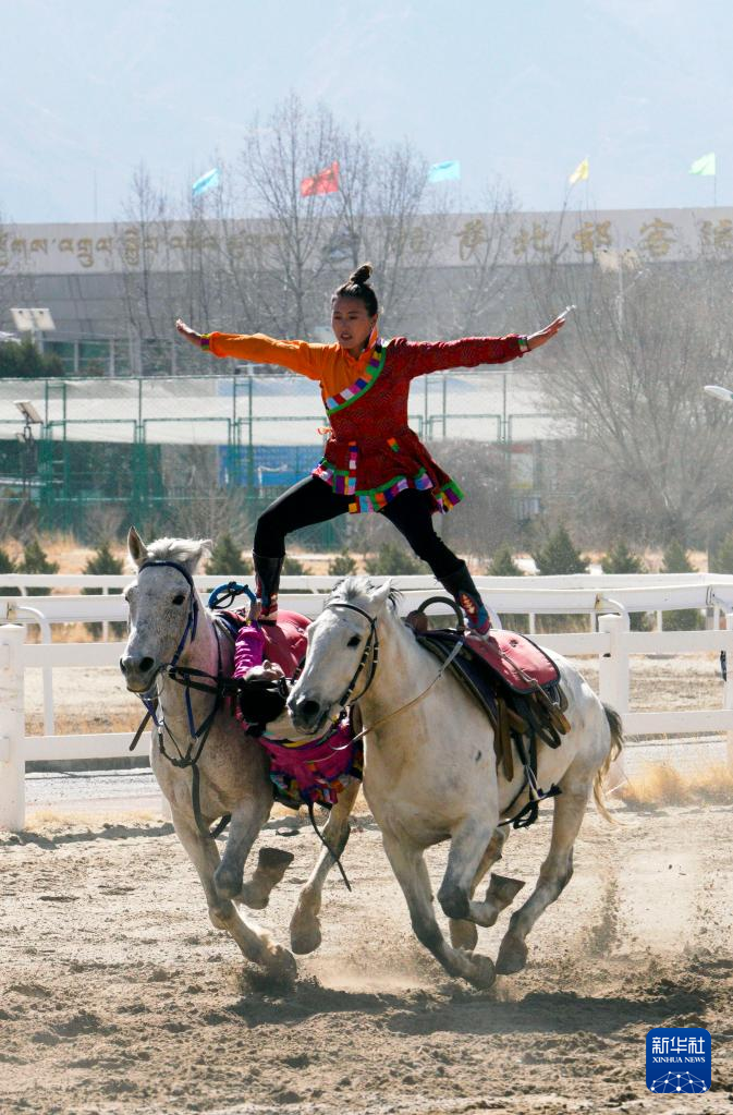 每年藏历新年初三,在拉萨赛马场举办马术表演已成为当地庆祝新年的传统,深受广大群众喜爱。骑手们英姿飒爽,为观众们带来骑马拾哈达、骑马射箭等精彩表演。