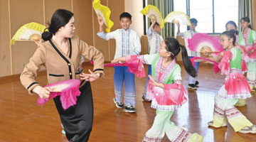 3月21日,孩子们在吉尔吉斯斯坦首都比什凯克阿拉套广场参加纳乌鲁斯节庆典表演。