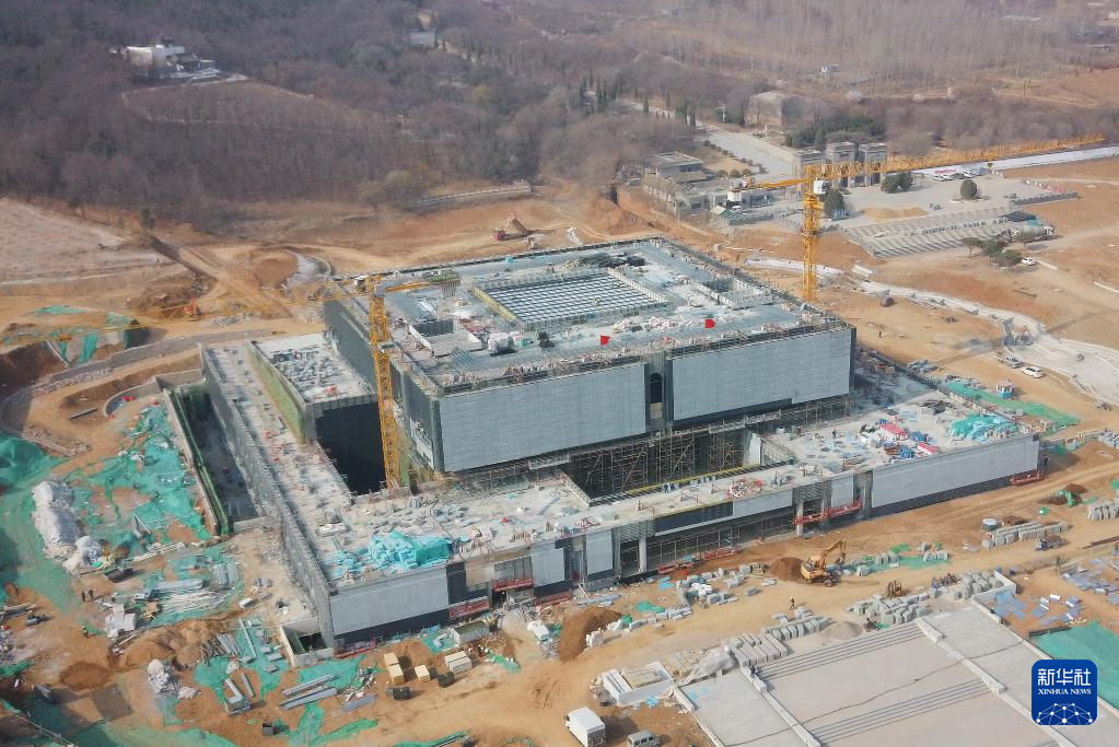 4月2日拍摄的建设中的山海关中国长城博物馆(暂定名)(无人机照片)。