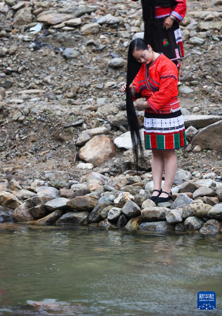 当日是农历三月初三,广西桂林市龙胜各族自治县黄洛瑶寨举行“三月三龙脊长发节”活动,吸引游客前来参观游览。黄洛瑶寨的红瑶族妇女有世代相传的蓄发习俗,平均头发长度达1.7米,最长的有2.72米。
