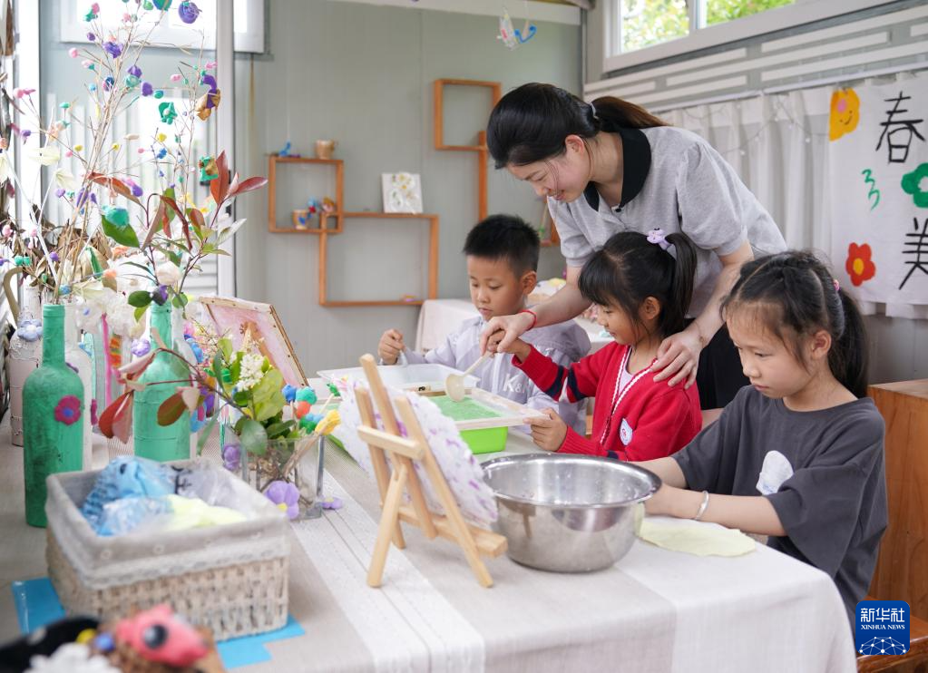 当日,浙江省诸暨市暨北幼儿园举办“夏趣文化节”,孩子们在老师指导下学习体验古法造纸、扎染、做香包等项目,感受传统手工的乐趣。