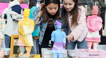 5月18日,游客在西夏博物馆欣赏展出的西夏文物。