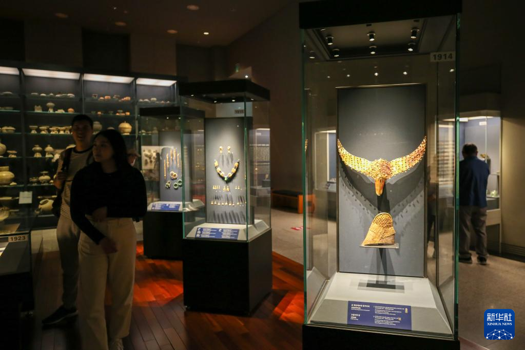 5月18日,游客在韩国首尔国立中央博物馆参观。