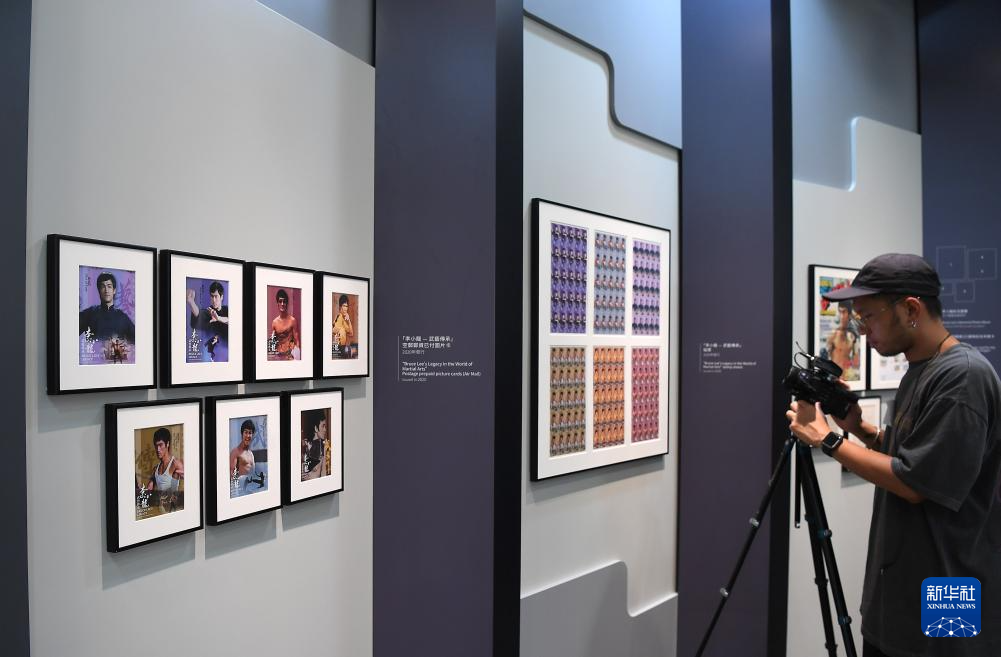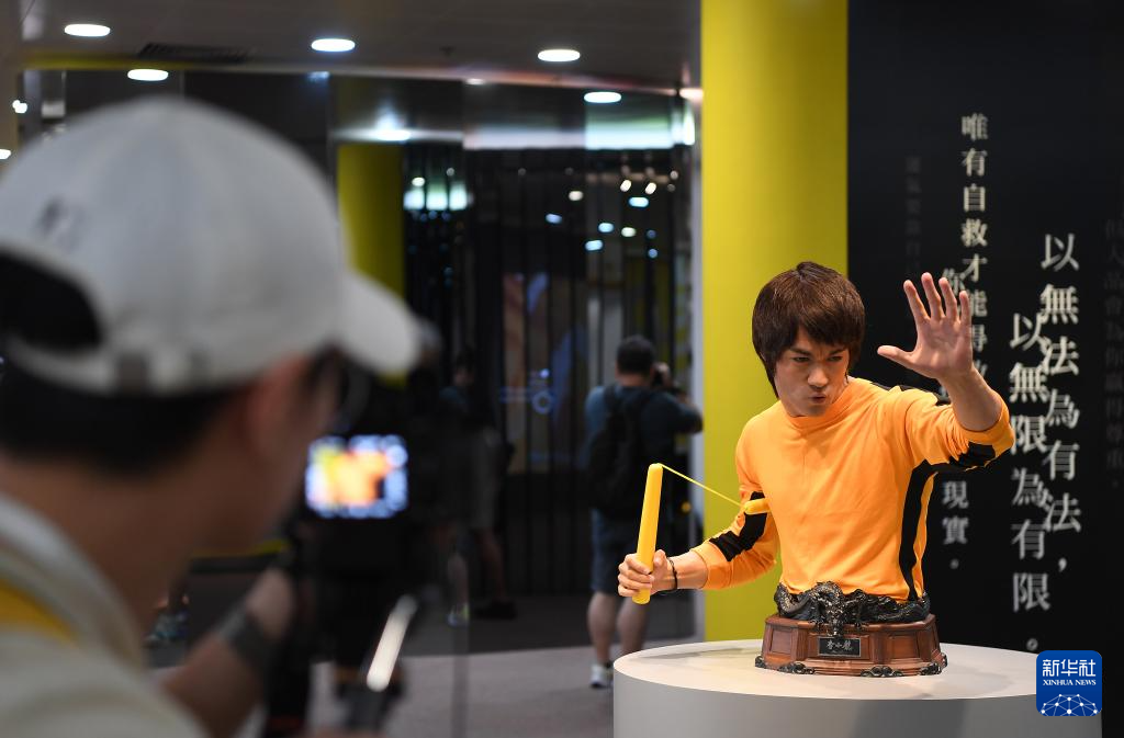 7月11日,媒体记者在香港文化博物馆“李小龙——经典永续”展览上拍摄。