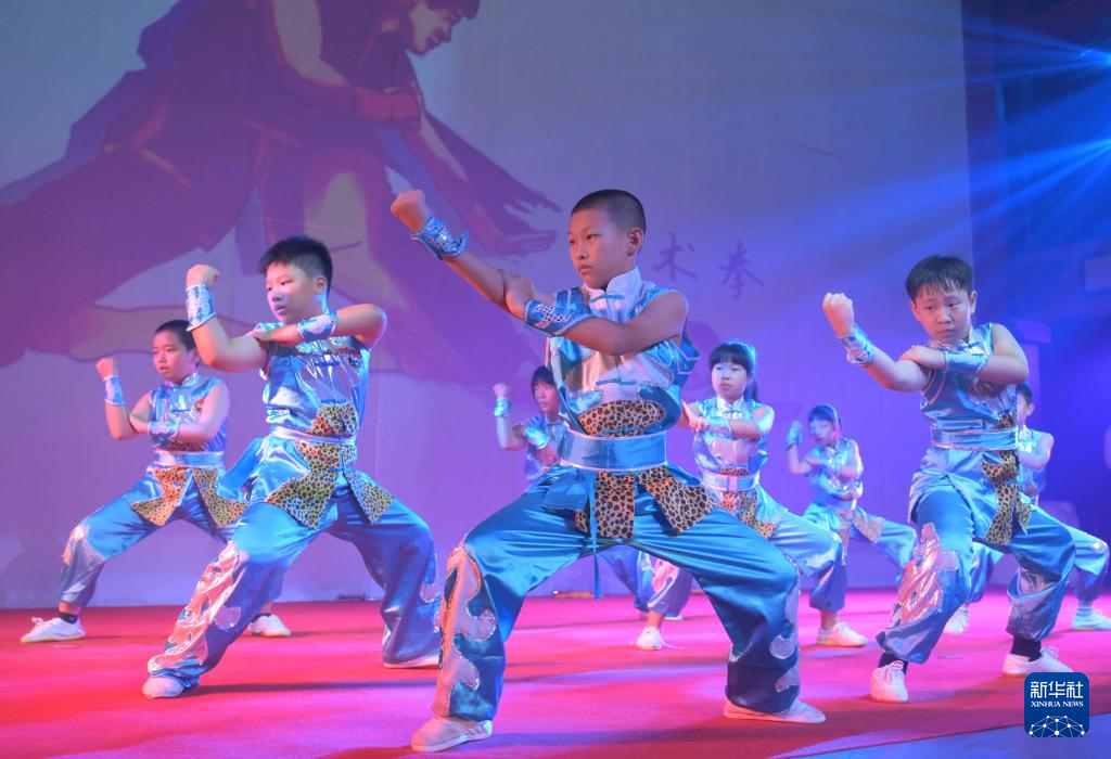 7月11日,小朋友表演国家级非物质文化遗产“地术拳”。
