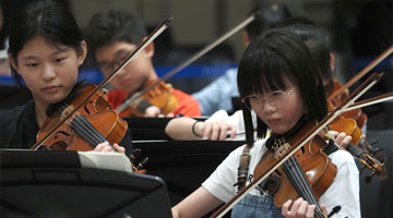 7月14日傍晚,小朋友在开封市开元广场设立的“非遗市集”现场体验剪纸技艺。