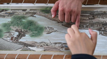 7月18日,参观者在观看艺术作品《幸福的全家福》。