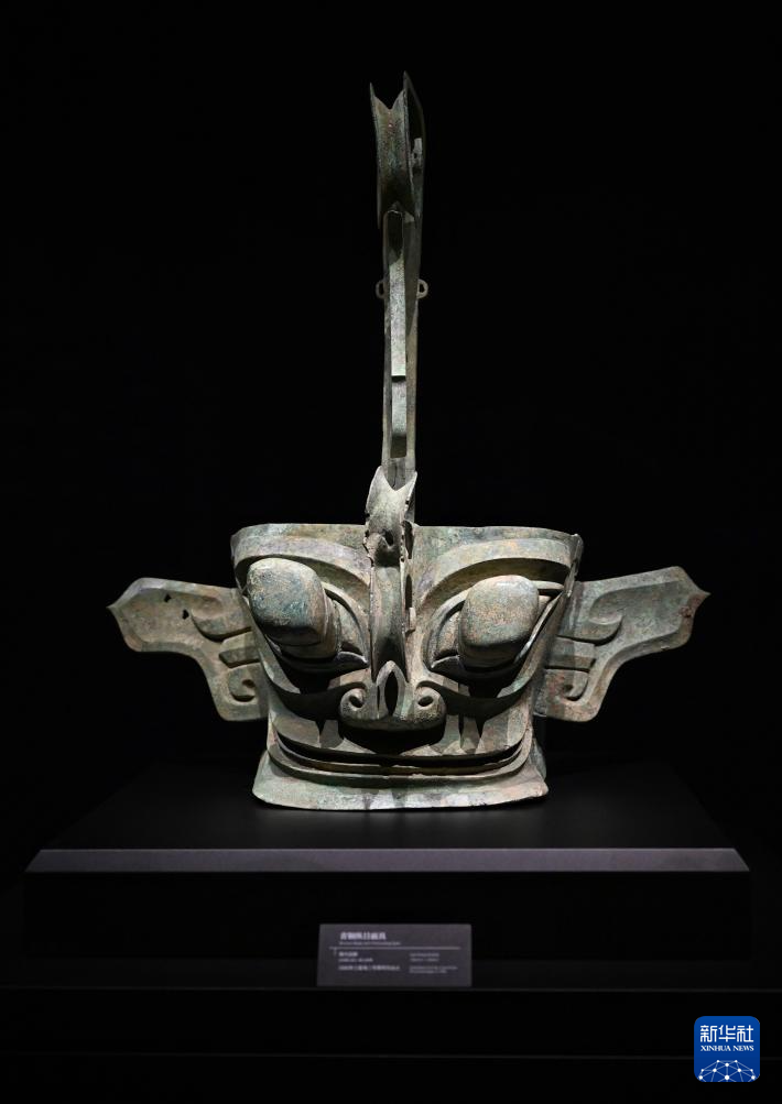 7月26日在三星堆博物馆新馆拍摄的青铜纵目面具。