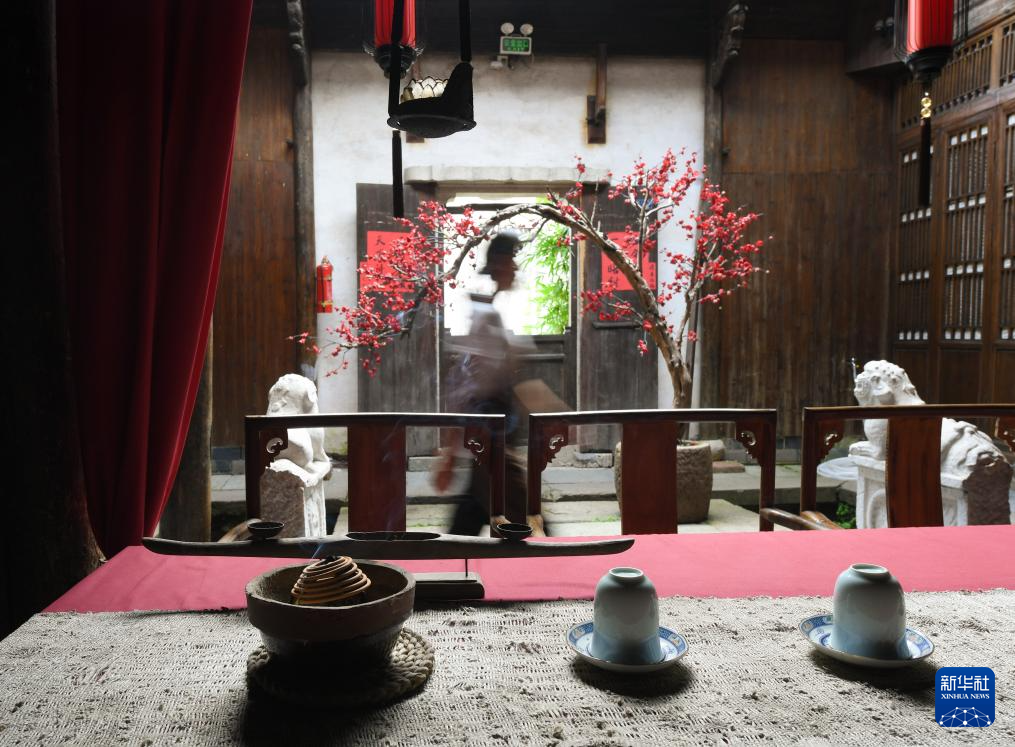 8月1日,工作人员从诸葛村一家民宿内走过。