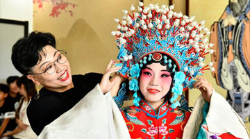 8月11日,大学生志愿者和村民一起在葛家村的艺术庭院内制作当地传统美食。