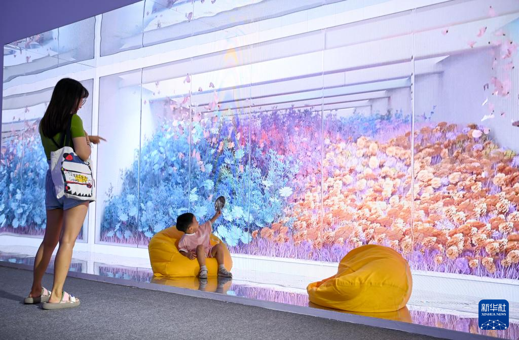 8月18日,参观者在数字文化馆体验数字显示技术。