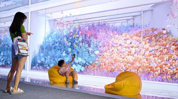 8月19日,游客在大足石刻宝顶山景区参观。