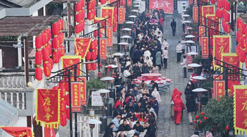 1月6日,游客在浚县古城的土圆粮仓内游览。