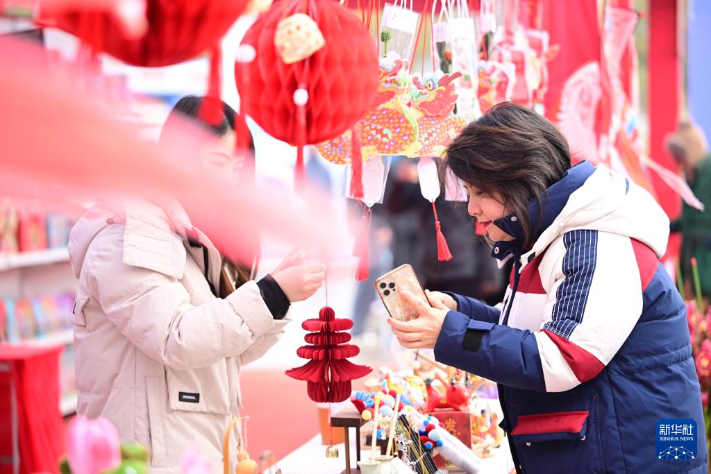 1月20日,市民在江苏省淮安市金湖县的年货集市上选购春节饰品。