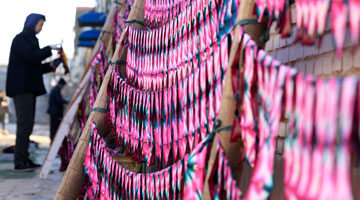 春节临近,安徽省黄山市歙县徽州古城挂起串串大红灯笼,洋溢着喜庆红火的节日氛围。