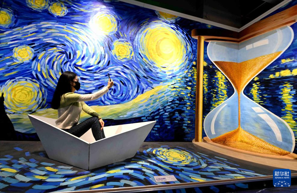 近日,梵高星空艺术展在河北石家庄展出,展览通过30多个主题空间,为观众营造色彩斑斓的梦幻体验。