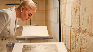 这是卢发良创作的细纹刻纸伴手礼“九狮图”(3月13日摄)。