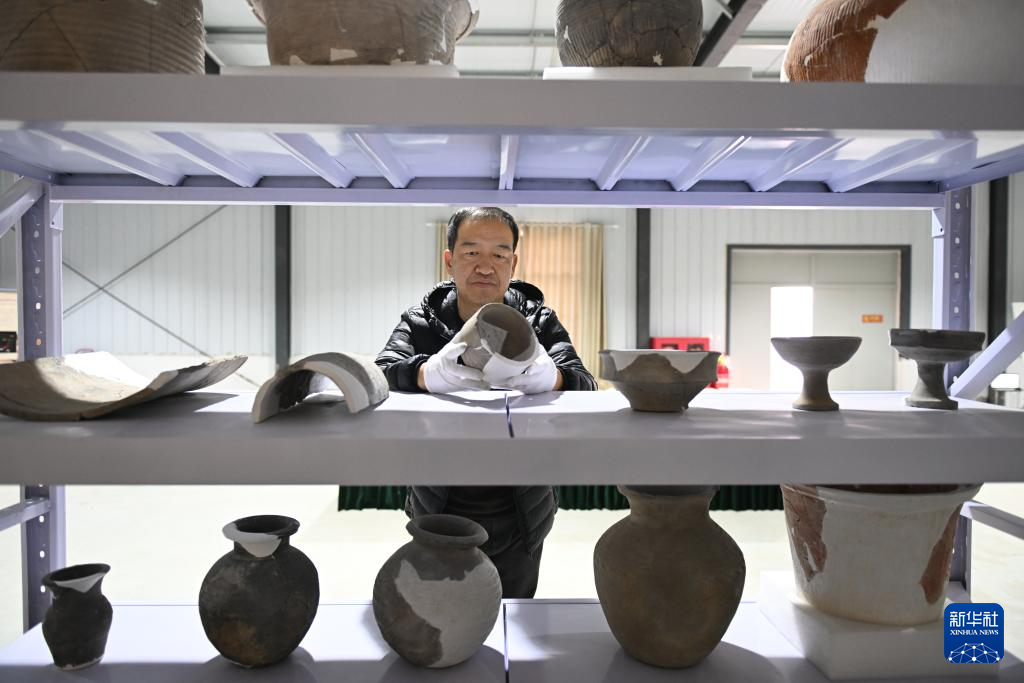 3月26日,雄安新区文物保护与考古工作站负责人雷建红在整理南阳遗址出土文物。新华社记者 牟宇 摄