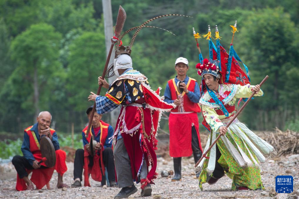 如今,越来越多的年轻人开始关注和了解阳戏,陈永霞的戏班子也有了更年轻的“预备班主”。对于陈永霞、冷定祥这样的“老戏骨”来说,阳戏舞台没有谢幕。锣鼓声声唱词起,酉阳阳戏人“农忙务农、农闲唱戏”的戏曲人生在这片土地上不断延续。