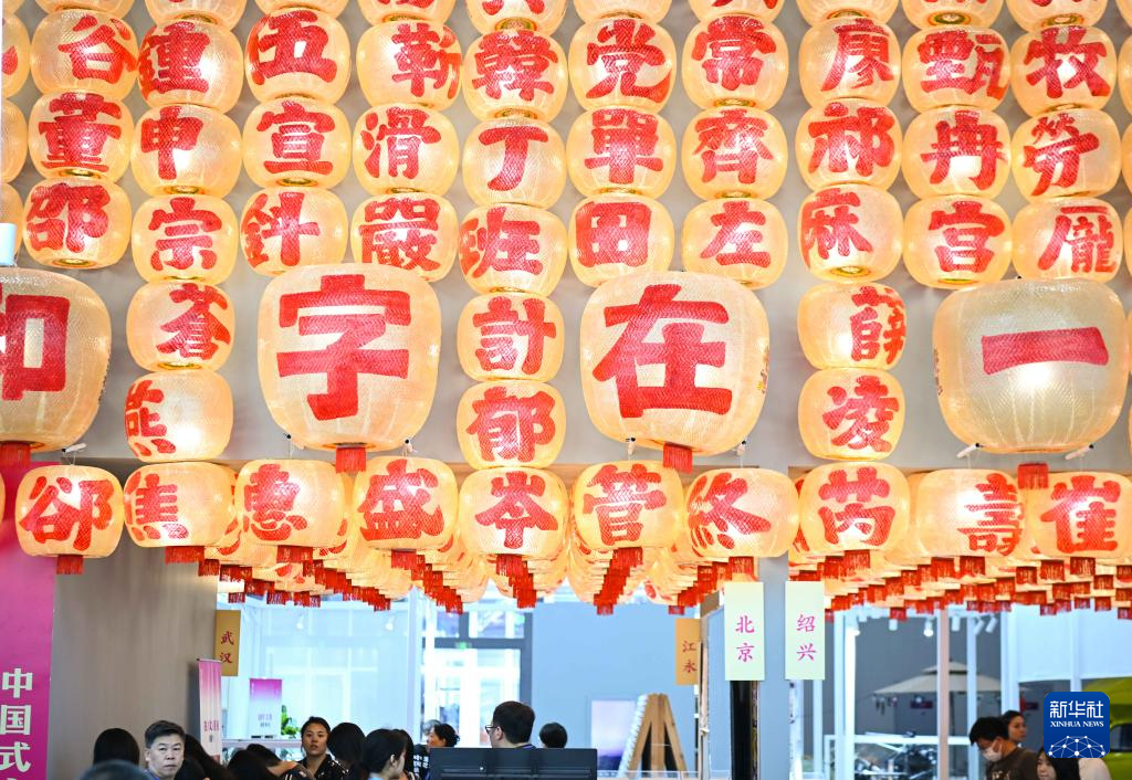 5月23日,观众在第二十届文博会上打卡留影。