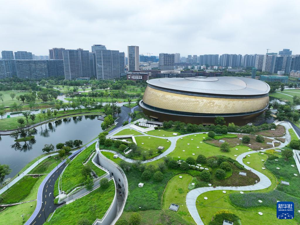 鸟瞰拱墅运河体育公园(无人机照片,6月12日摄)。