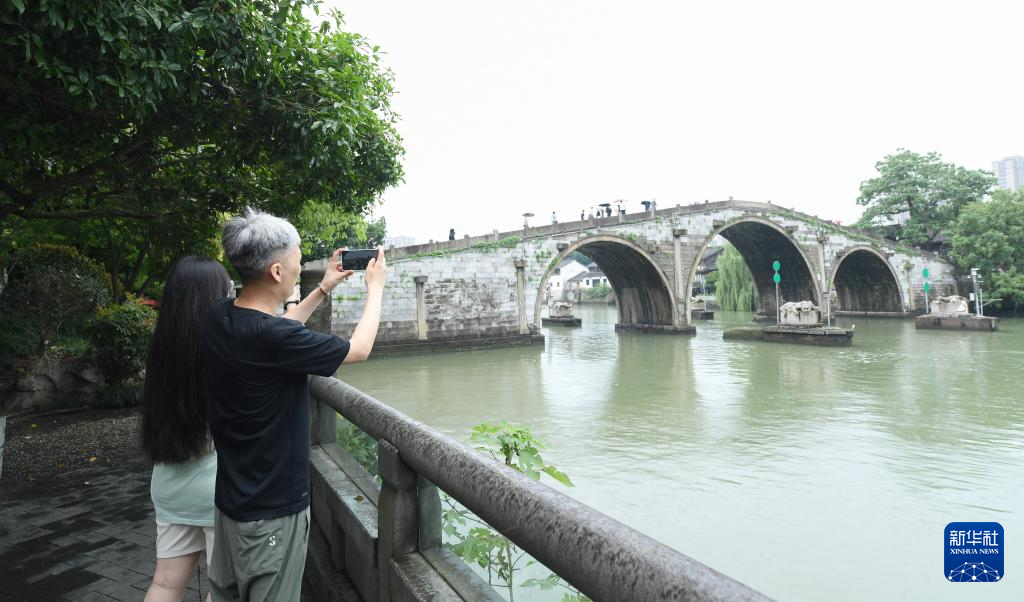 6月12日,游客拍摄拱宸桥。