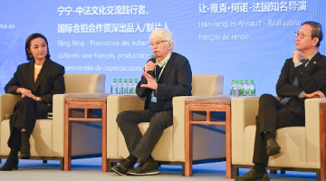 9月24日,法国导演让-雅克·阿诺(中)在“中法影像对话沙龙”交流。