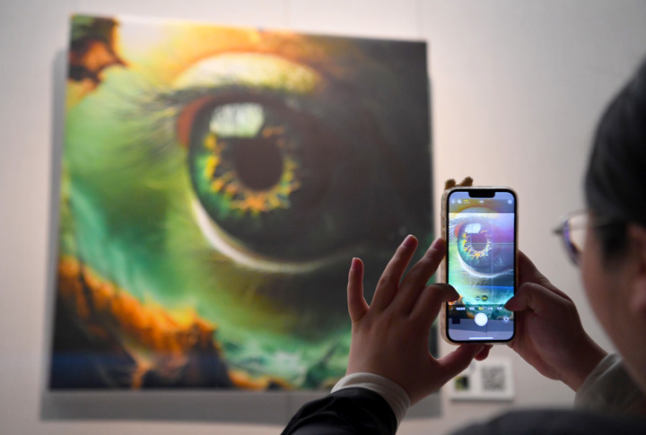 2025年2月,观众在郑州博物馆参观“AI绘画的共生探索”作品展。新华社记者郝源摄