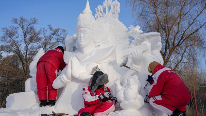 哈爾濱國際雪雕比賽:“三九”天 露芳容