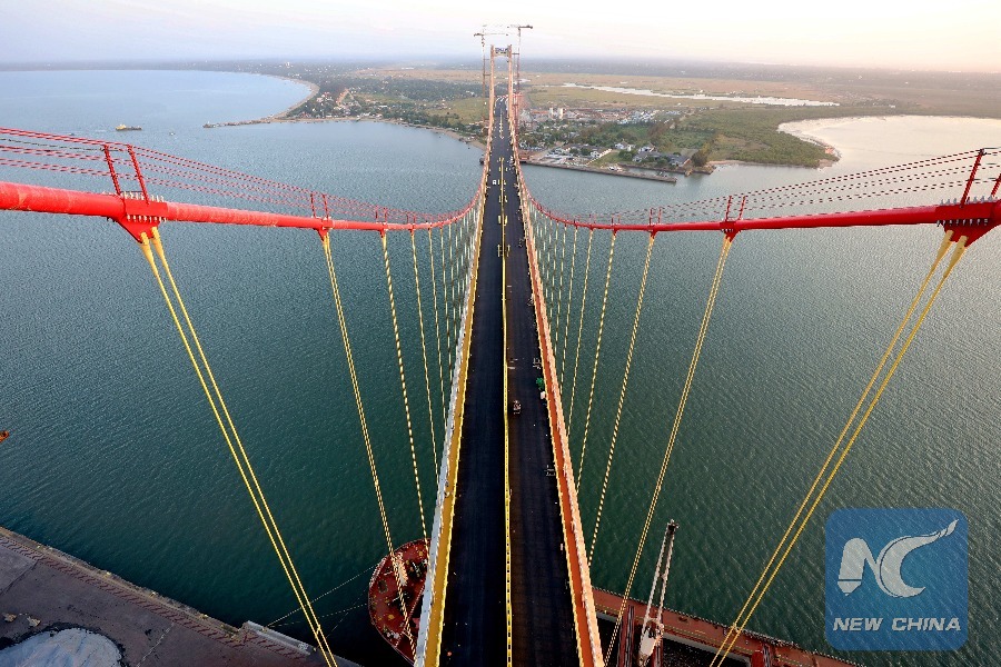 Photo taken on May 10, 2018 shows the Chinese-built Maputo Bridge in Maputo, capital of Mozambique. (Xinhua/Wang Teng)