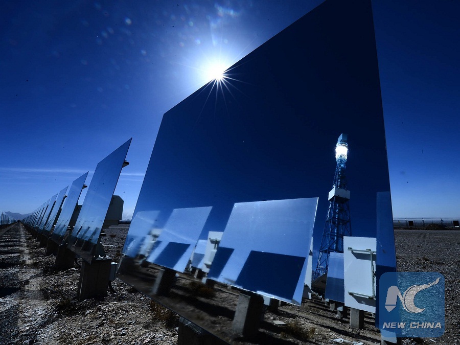 Photo taken on March 16, 2014 shows a view of the 10-megawatts solar power station in Delingha of northwest China's Qinghai province.