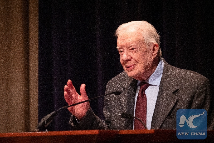 Former U.S. President Jimmy Carter speaks during a symposium at the Carter Center in Atlanta, the United States on January 18, 2019, to commemorate the 40th anniversary of U.S.-China diplomatic relations. (Xinhua/Liu Pinran)