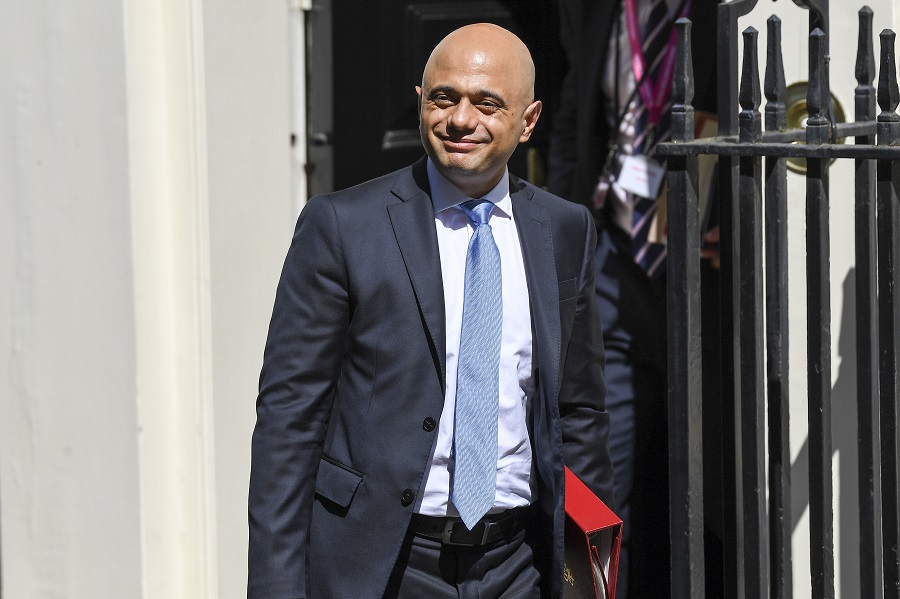 Britain's Chancellor of the Exchequer Sajid Javid leaves 10 Downing Street after attending a cabinet meeting in London, Britain, on July 25, 2019. (Xinhua/Alberto Pezzali)