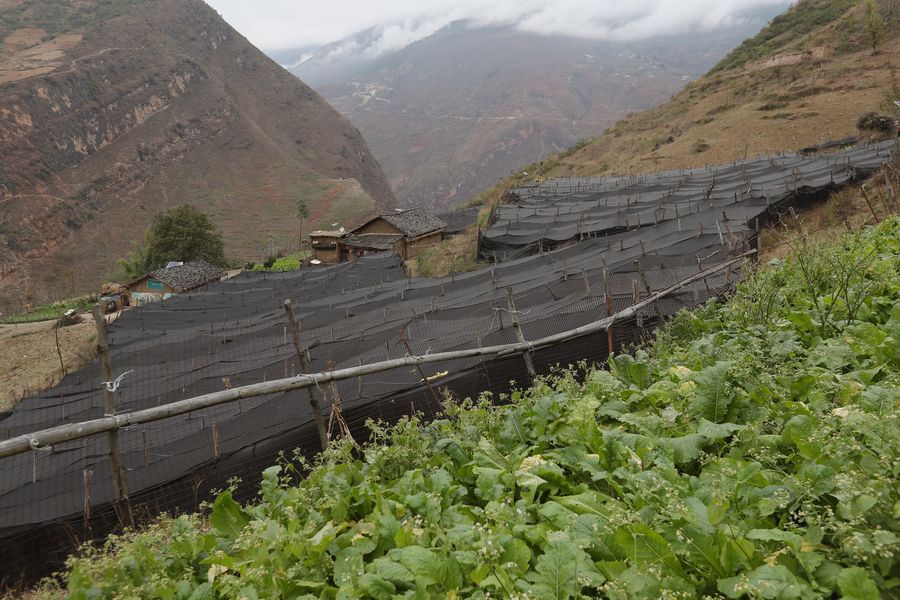 Photo taken on Nov. 24, 2019 shows greenhouses for planting notoginseng in Atulie'er Village, Zhaojue County. (Xinhua/Wang Xi)