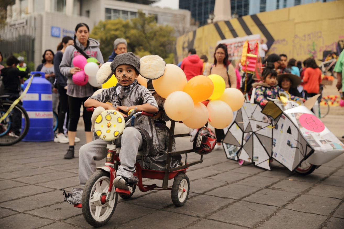 A child participates in a bicycle zodiac decoration competition in Mexico City, Mexico, Jan. 19, 2020. (Photo provided by China Cultural Center in Mexico)