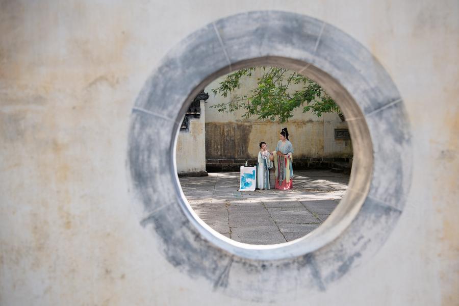 Tourists pose for photos in Chengkan Village, Huizhou District of Huangshan City, east China's Anhui Province, July 25, 2025. (Xinhua/Zhang Duan)