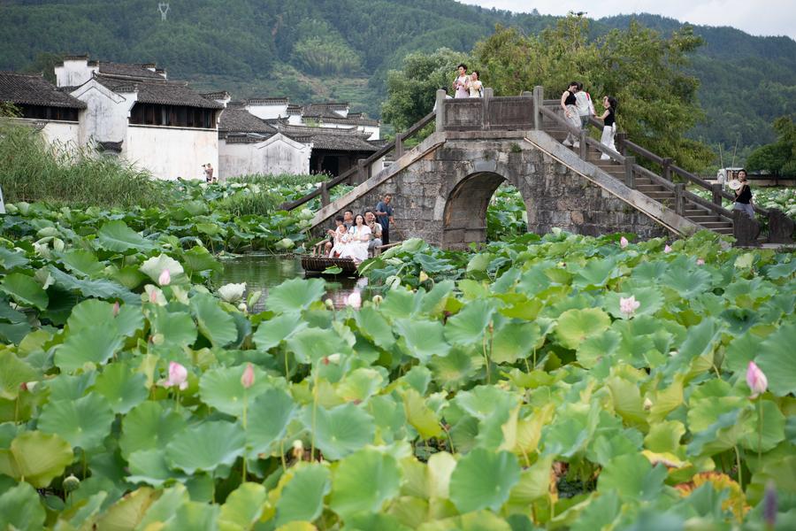 Tourists visit Chengkan Village, Huizhou District of Huangshan City, east China's Anhui Province, July 25, 2025. (Xinhua/Zhang Duan)