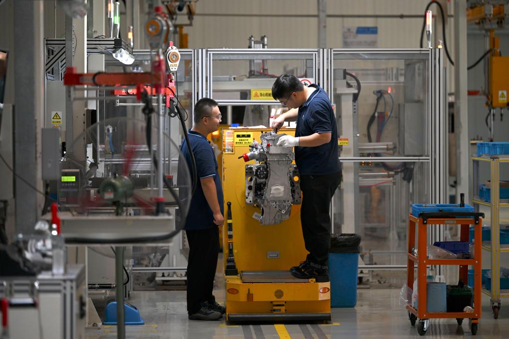 Staff members assemble an aeroengine at the Wuhu Diamond Aeroengine Co., Ltd. in Wanzhi Town of Wuhu City, east China's Anhui Province, Aug. 21, 2025.(Xinhua/Huang Bohan)