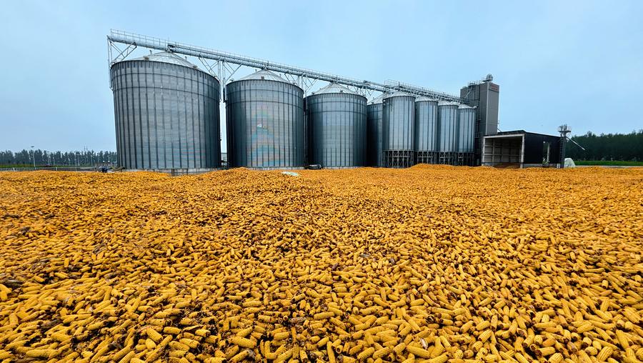 Powered drying facilities for harvested corns are seen in Dezhou City, east China's Shandong Province, Oct. 9, 2025. (Photo by Zhao Huhao/Xinhua)