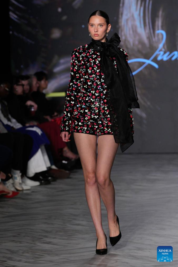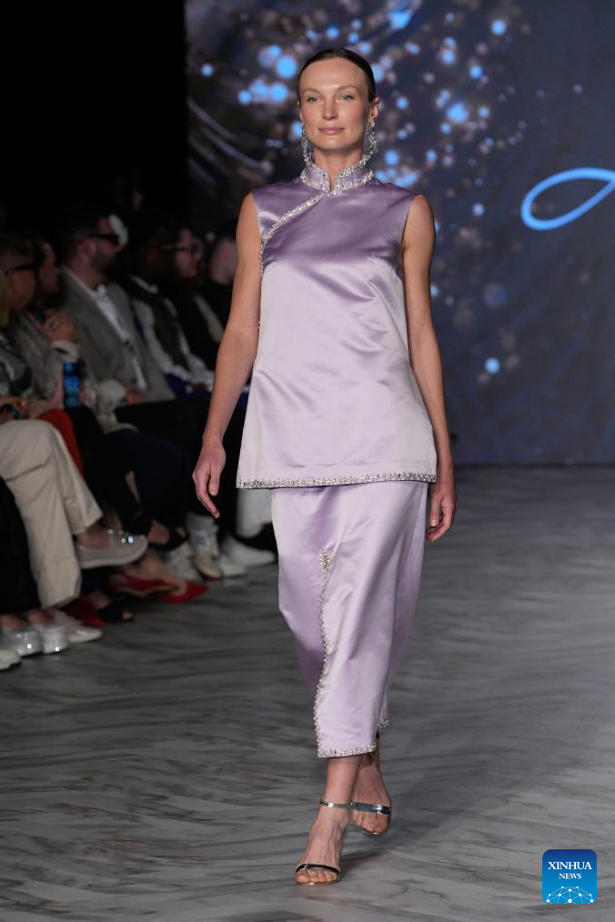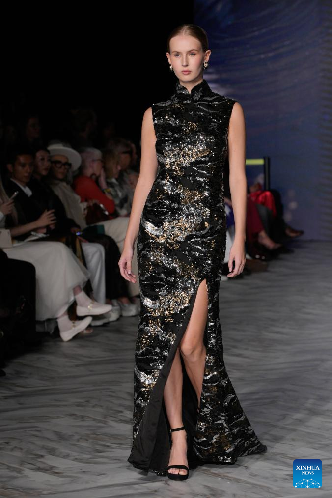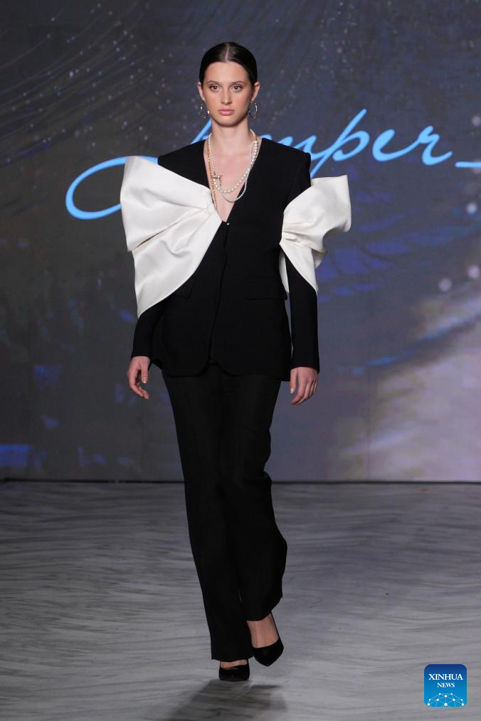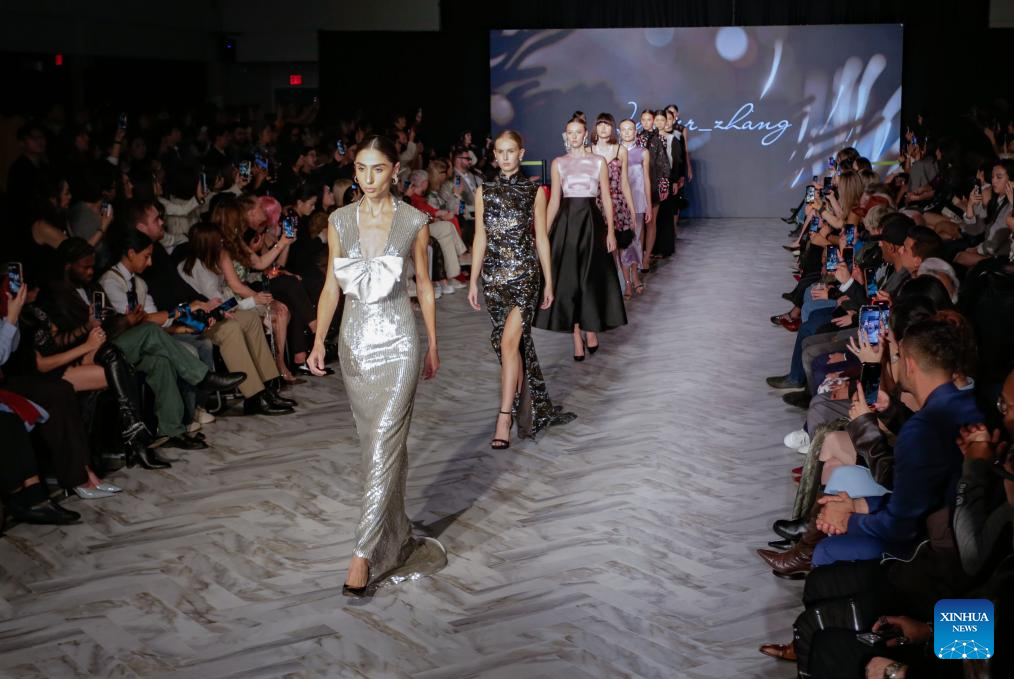 Models walk the runway in JUMPER ZHANG's Spring/Summer 2026 collection during Vancouver Fashion Week in Vancouver, British Columbia, Canada, Oct. 16, 2025. (Photo by Liang Sen/Xinhua)