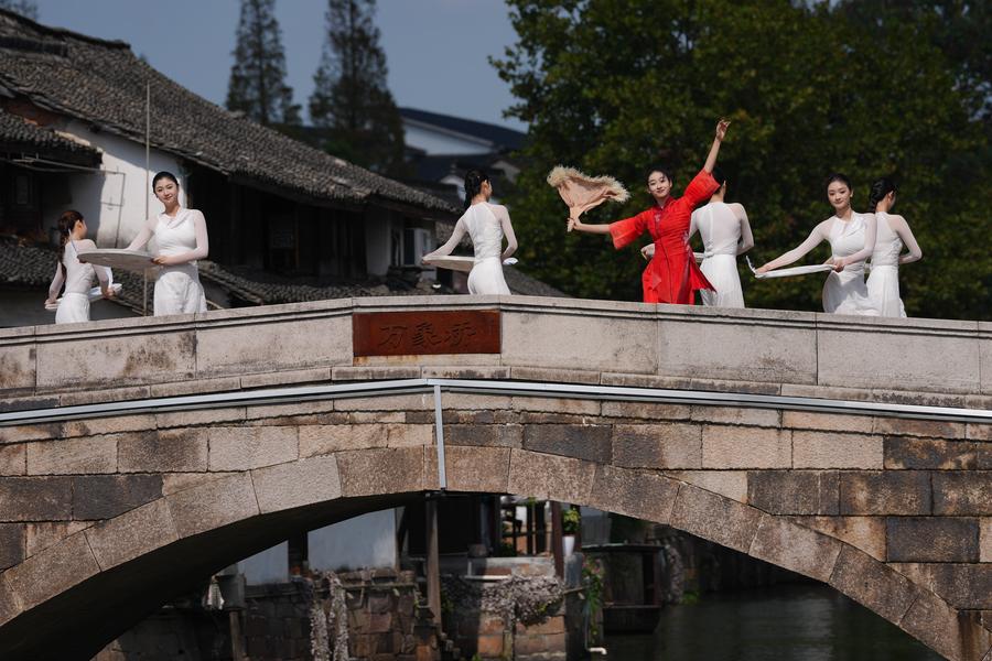 Dancers perform during a dance festival in the ancient town of Xinshi of Deqing County, east China's Zhejiang Province, on Oct. 24, 2025. (Xinhua/Huang Zongzhi)A dancer performs on an ancient bridge during a dance festival in the ancient town of Xinshi of Deqing County, east China's Zhejiang Province, on Oct. 24, 2025. (Xinhua/Huang Zongzhi)Dancers perform during a dance festival in the ancient town of Xinshi of Deqing County, east China's Zhejiang Province, on Oct. 24, 2025. (Xinhua/Huang Zongzhi)Dancers perform during a dance festival in the ancient town of Xinshi of Deqing County, east China's Zhejiang Province, on Oct. 24, 2025. (Xinhua/Huang Zongzhi)Dancers perform during a dance festival in the ancient town of Xinshi of Deqing County, east China's Zhejiang Province, on Oct. 24, 2025. (Xinhua/Huang Zongzhi)Tourists watch the performances during a dance festival in the ancient town of Xinshi of Deqing County, east China's Zhejiang Province, on Oct. 24, 2025. (Xinhua/Huang Zongzhi)■