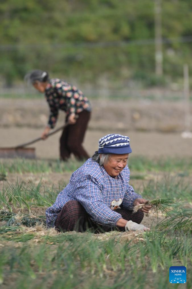 To date, the planting area of chives in Sandu Town has topped 43,000 mu (about 2,867 hectares, multiple cropping included), with an annual output of approximately 100,000 metric tons. (Photo by Zheng Changhao/Xinhua)